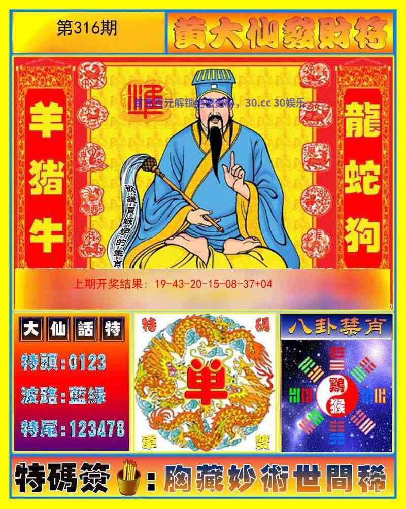 316期:天地两肖💞【+鸡蛇】开:马24中